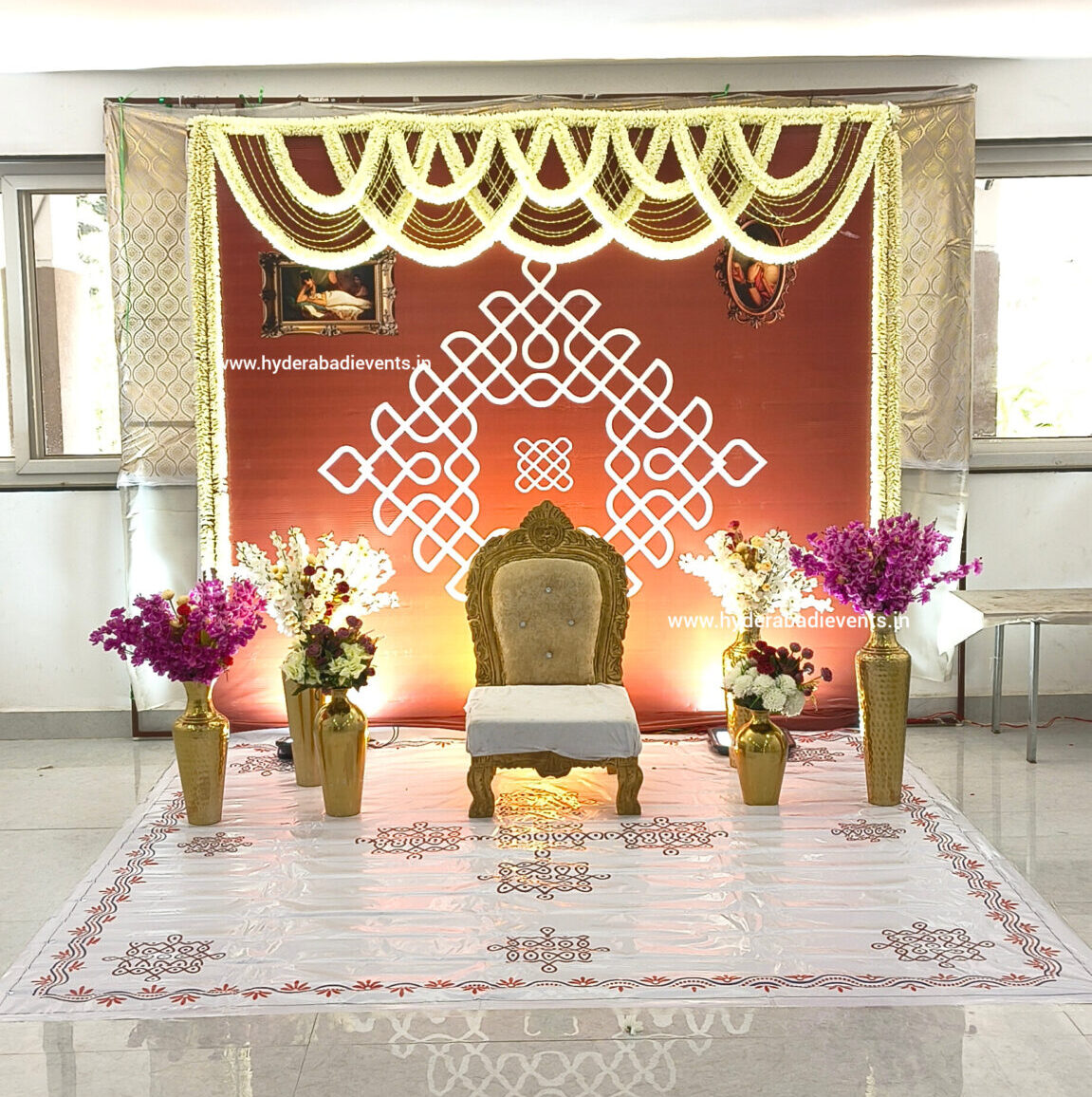 Simple Sreemantham Backdrop 16/8ft Decor With Artificial Flowers