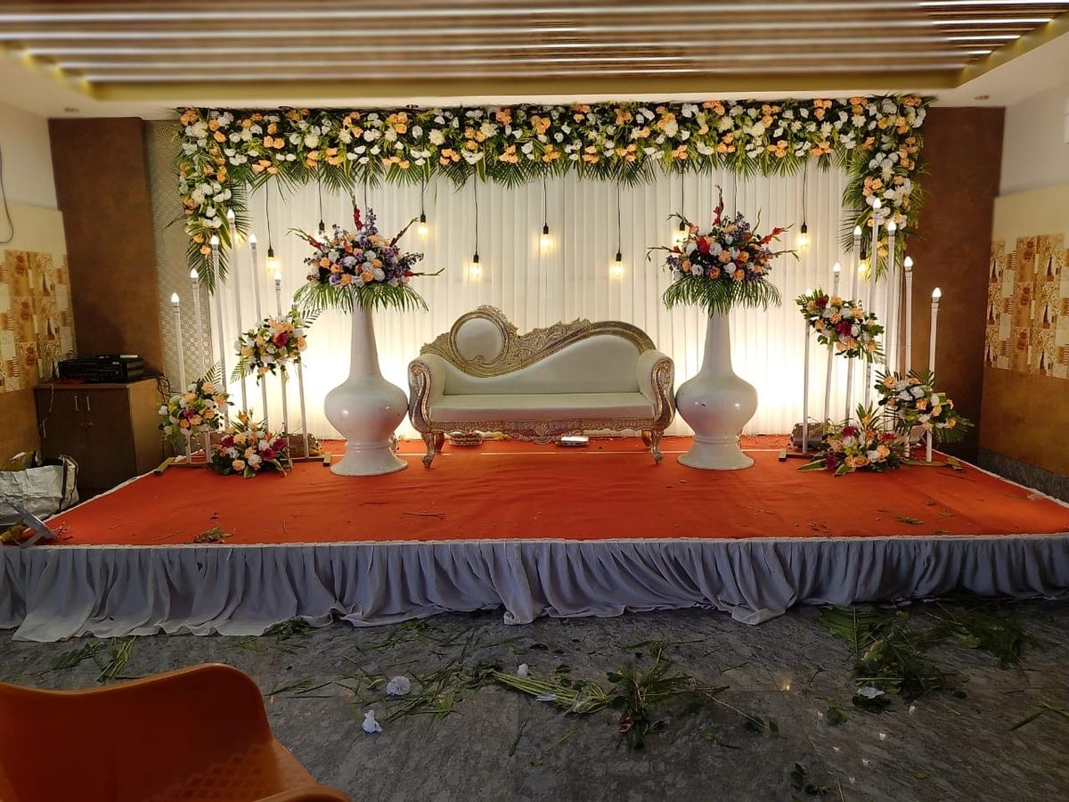 Our luxury floral engagement stage decor is crafted to deliver a high-end wedding ambience with modern pastel floral styling, premium backdrop draping and royal seating comfort. Ideal for indoor banquet halls and wedding venues, this setup enhances photography appeal while providing a grand stage presence. Designed by expert decorators, this theme suits engagement, reception and sangeet celebrations.