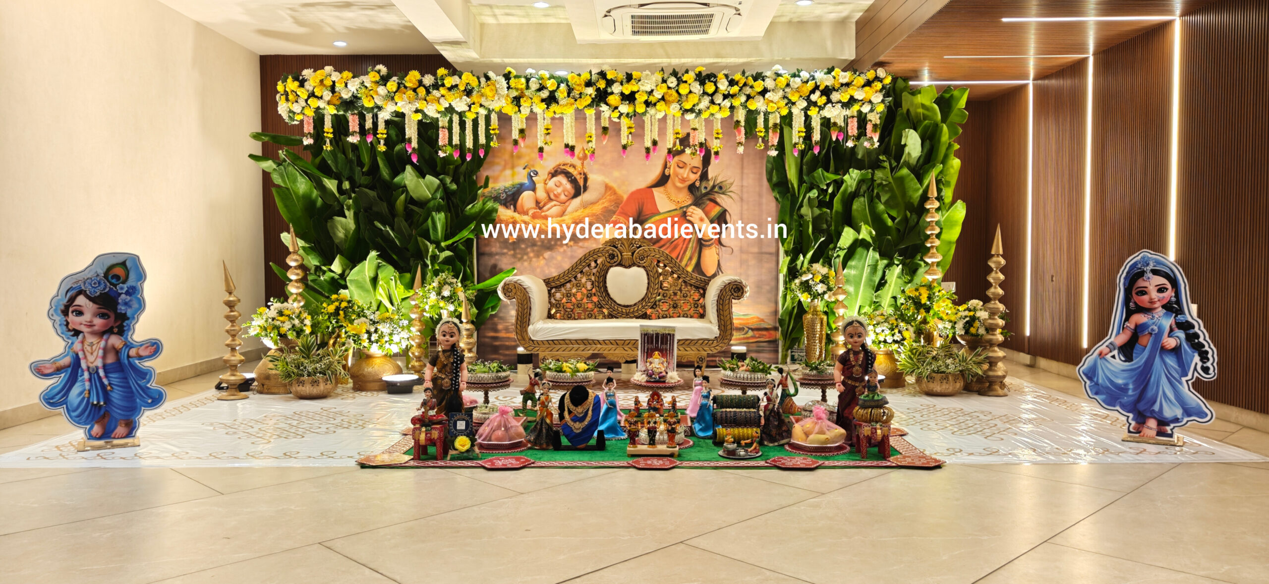 Experience a rich traditional Seemantham decoration in Hyderabad designed with cultural authenticity and premium styling.