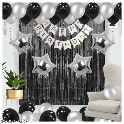 Black & white Metallic Balloons with String (Assorted) and star Wall Tape for Baby/Bridal Shower, Birthday and Home Decoration.