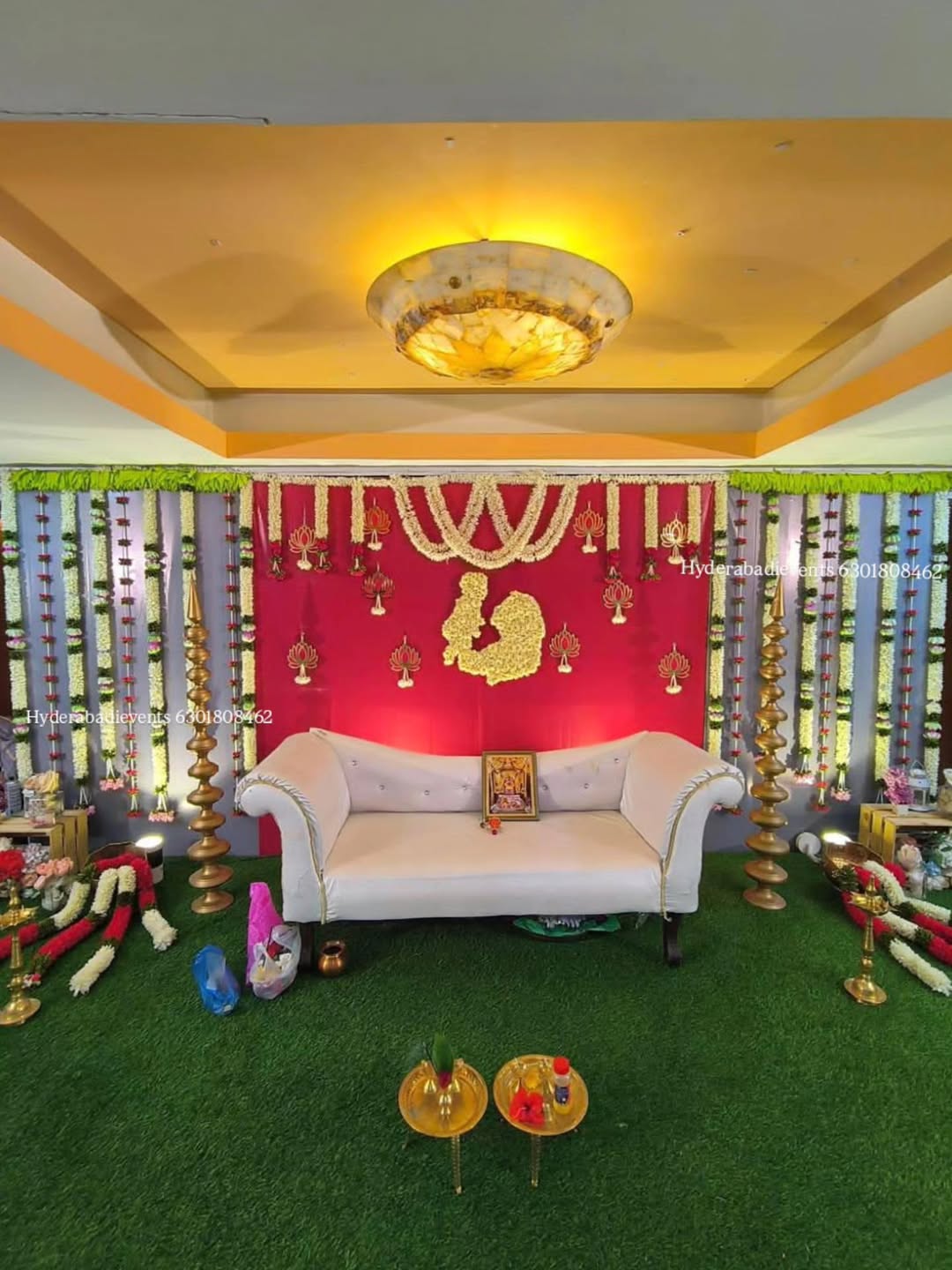 Simple Sreemantham Backdrop 16/8ft Decor With Artificial Flowers
